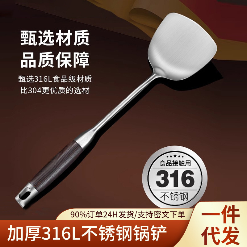 食品級316ステンレス鍋シャベル木柄高級家庭用調理器具黒檀木炒めスプーン鉄鍋シャベル