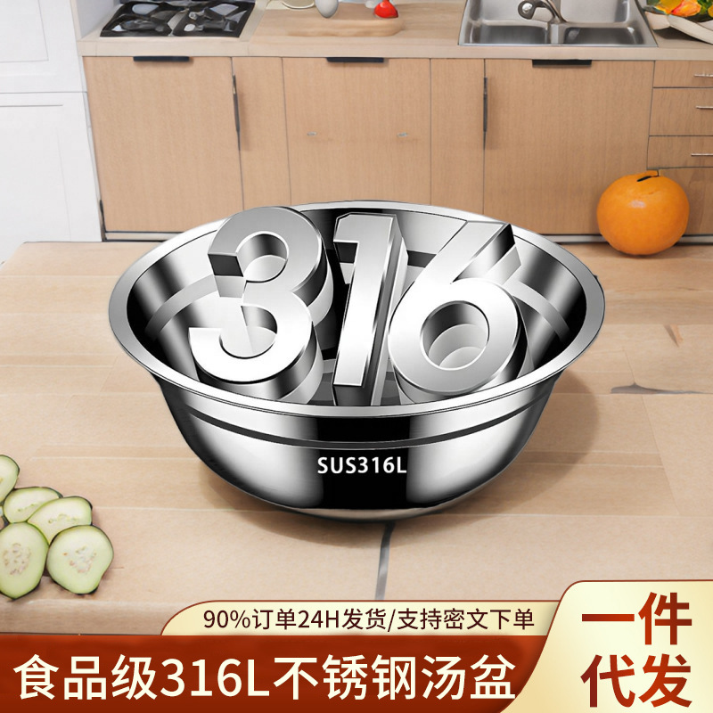 厚みのある食品グレードの 316L ステンレス鋼のボウル、厚みのあるスープボウル、家庭用ライスボウル、丸い小ボウル、キッチンおかずスープボウル