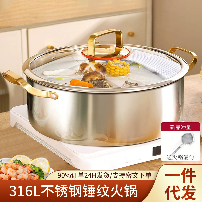 316 食品グレードのステンレス鋼のスープポット肥厚鍋家庭用新しい蒸しお粥ガス電磁調理器シチューポット