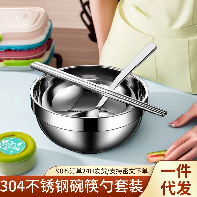 食品グレードの304ステンレス鋼の一人用ボウル、食器、スプーン、家庭用学生用の3点セット