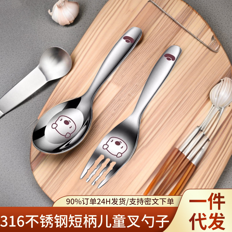 316ステンレスの子供の食事スプーンの赤ちゃんは麺を食べて短い柄のスプーンを厚くします。子供はスプーンの果物のフォークを食べます。