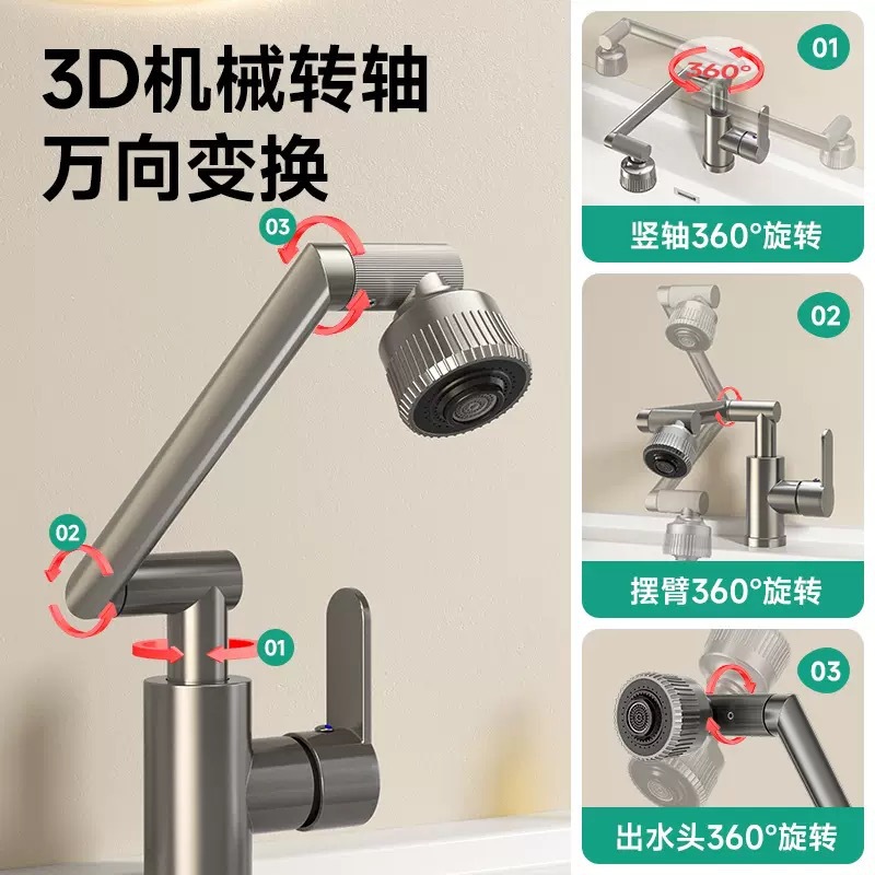 招財猫蛇口 ステンレス製回転式 キッチン/洗面所用 温水冷水両用 洗面台蛇口 回転式