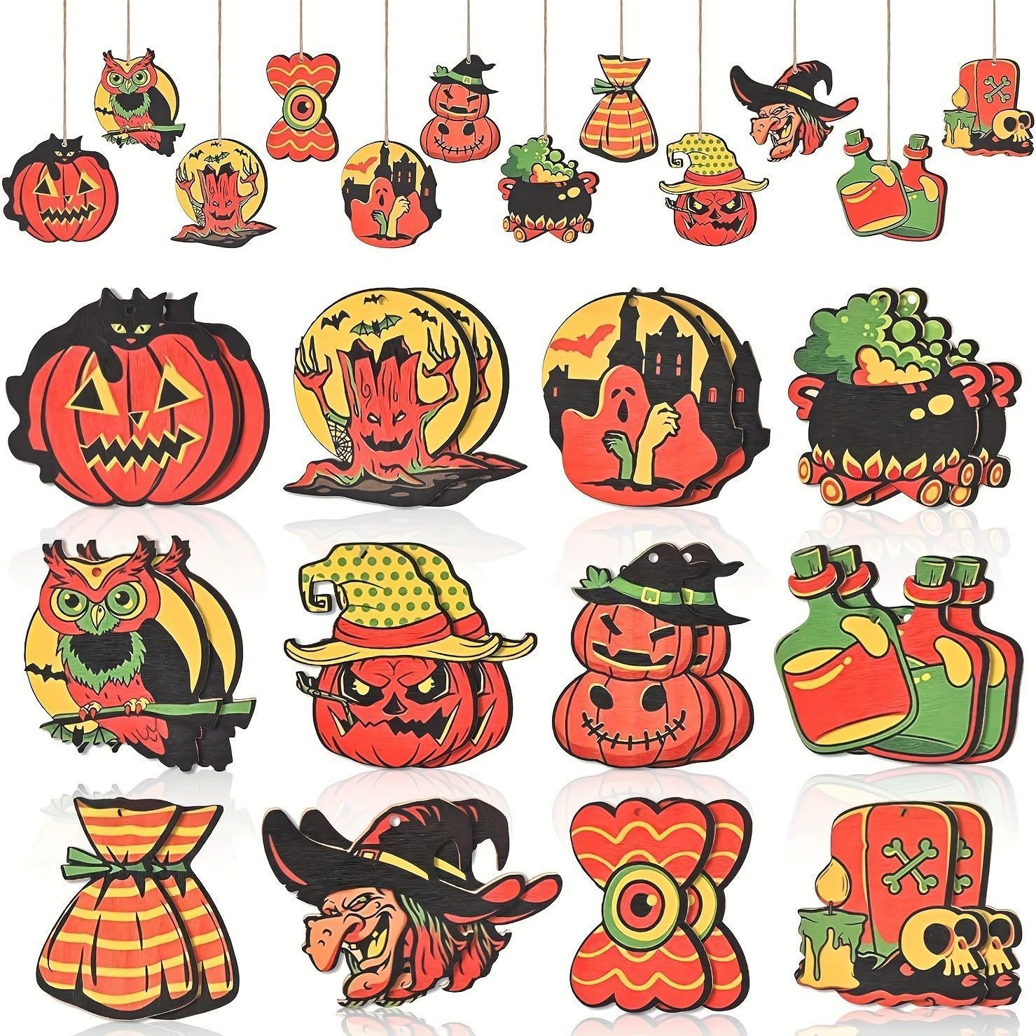跨境24件万圣节木制装饰品幽灵悬挂装饰品树木骷髅南瓜猫头鹰装饰