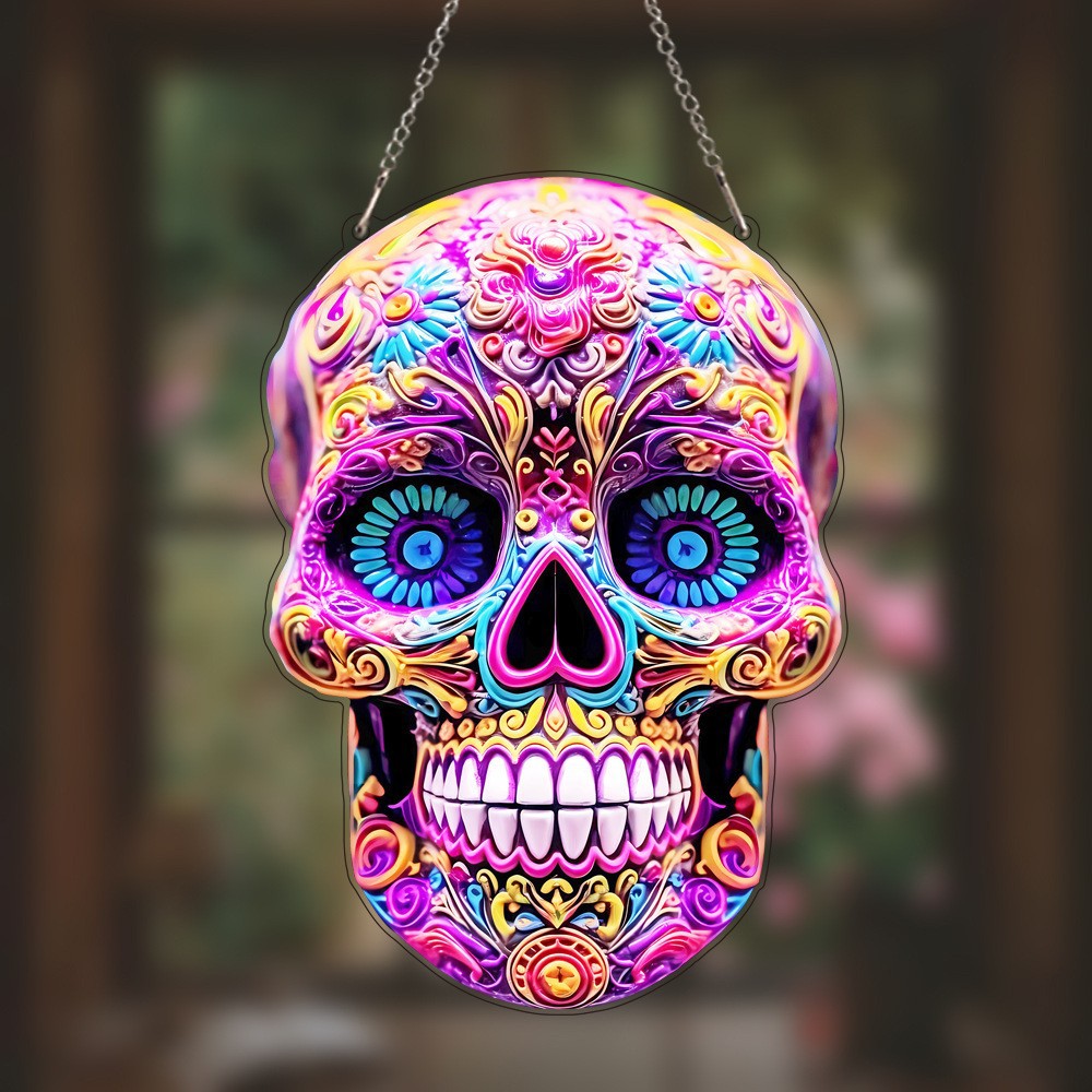 2025年 クロスボーダー スカル アクリル素材 平面 車用ペンダント 車載バックミラー バックパック キーホルダー カラフル