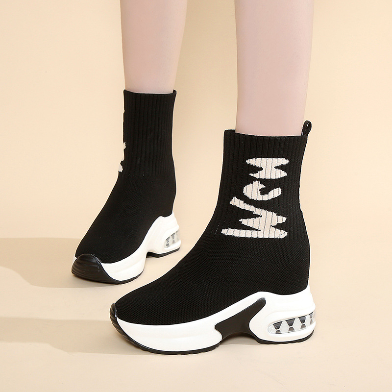 大きいサイズの靴下の靴の女性の2024秋冬の新型の飛織の高い弾力の中で松の餅の厚い底の1足はショートブーツの女性を漕ぎます。