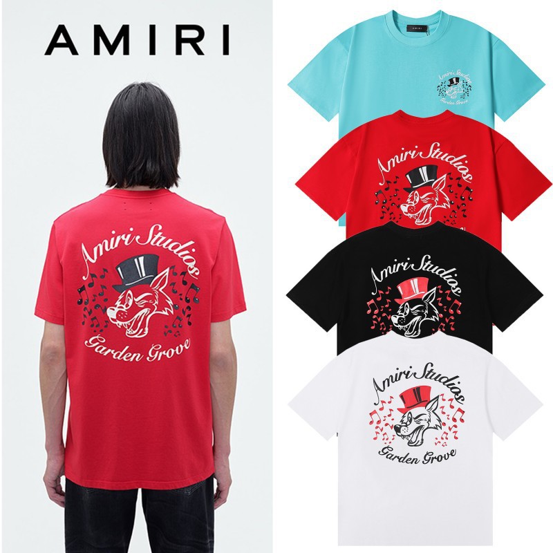 ハイバージョンコレクション AMIRI 夏半袖レターフルイドスプラッシュインクラウンドネックメンズ半袖 Tシャツクロスボーダートレンド
