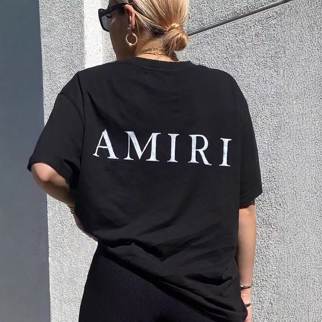 Amiri半袖新型高街amiriアルファベットロゴプリントエッジ刺繍カジュアルゆったりサイズ半袖t