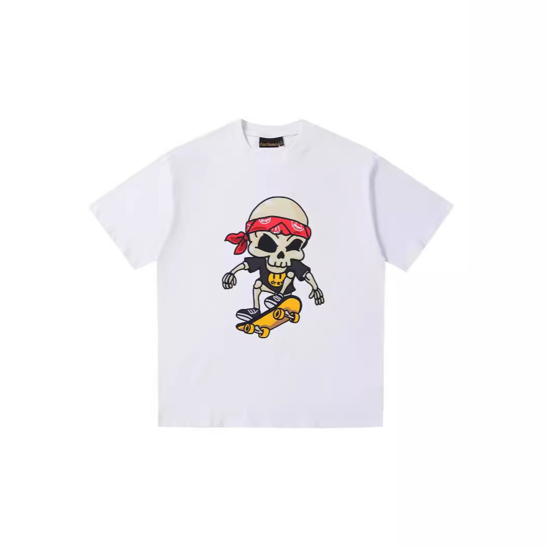 Drewスカル海賊スケートボード笑顔プリント半袖男女カップルゆるい丸首カジュアル高街潮tシャツ