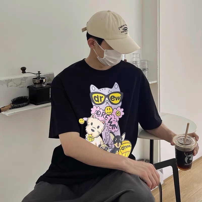 ドリューハウス Tシャツ 漫画の子犬プリント スマイリーフェイス Tシャツ 男女兼用 カップル アメリカのファッションブランド 夏 半袖