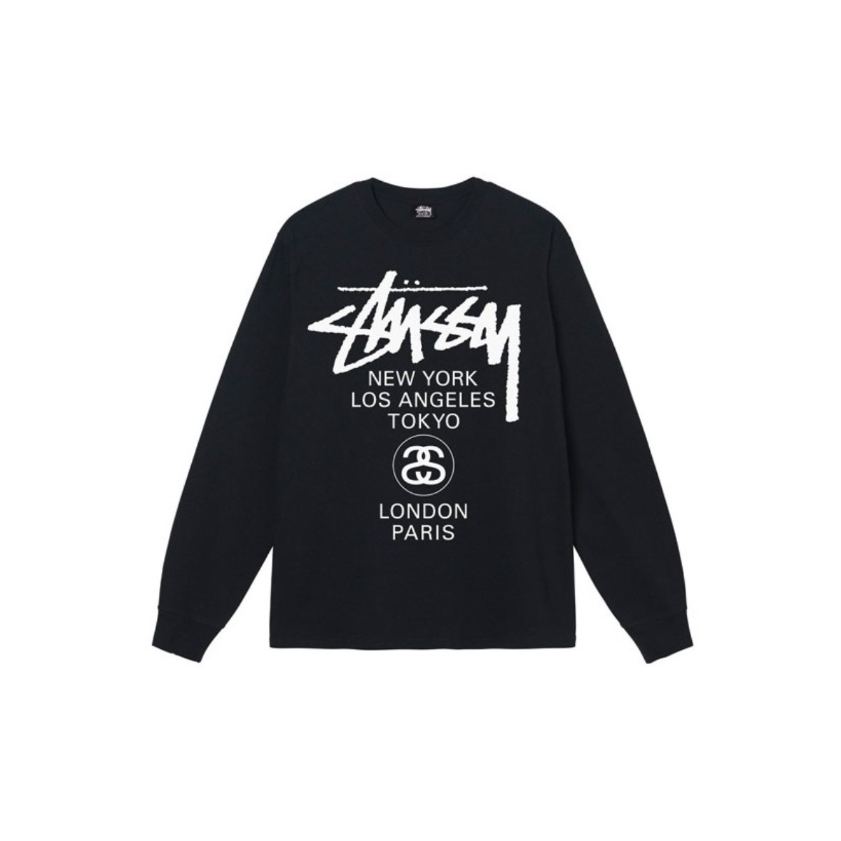 在庫あり ステューシー 23FW WORLD TOUR LS TEE ワールドツアー カursive フォント ラウンドネック 長袖 Tシャツ