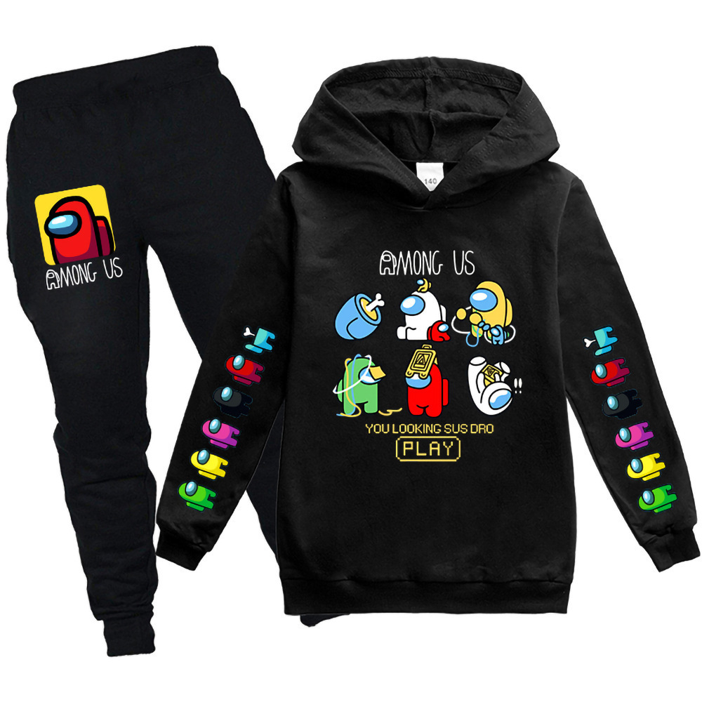 子供フードの模様のセーターの上着の長袖のかっこいいトレーナーの男の子と女の子の子供服の2つのセットのアニメ