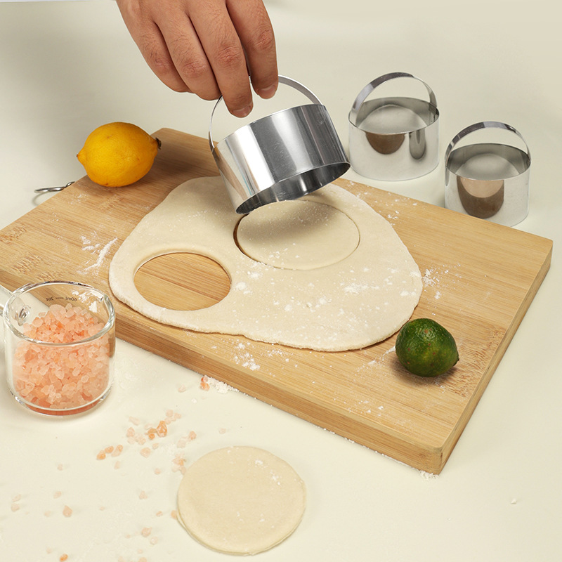 ハンドル付きステンレス円形ムースリング三点セットビスケット印金型餃子皮印型キッチンツール