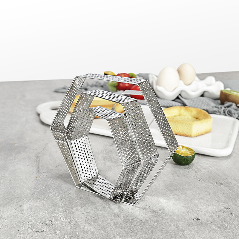 304ステンレス鋼厚い六角形ムースリングパンチングタワーリング焙煎用具チーズタルトリングケーキ金型