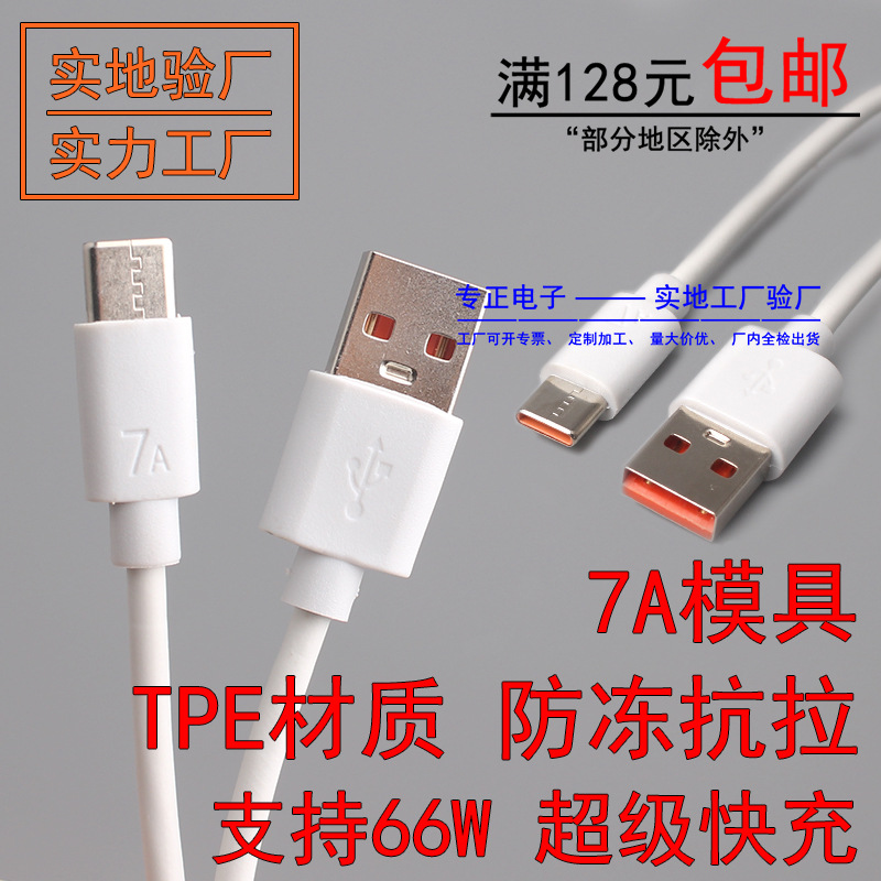 7A モールド高速充電充電ケーブル TPE 引張耐凍性耐久性のあるワイヤー Huawei 社のスーパー Type-C 携帯電話に適しています