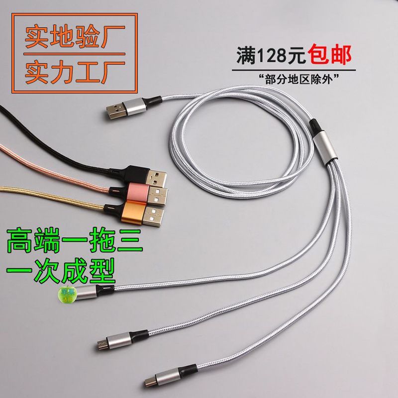 一モップ三データ線工場卸売りアルミニウム合金編組はアップルの安卓TYPE-C三合一充電線を適用する