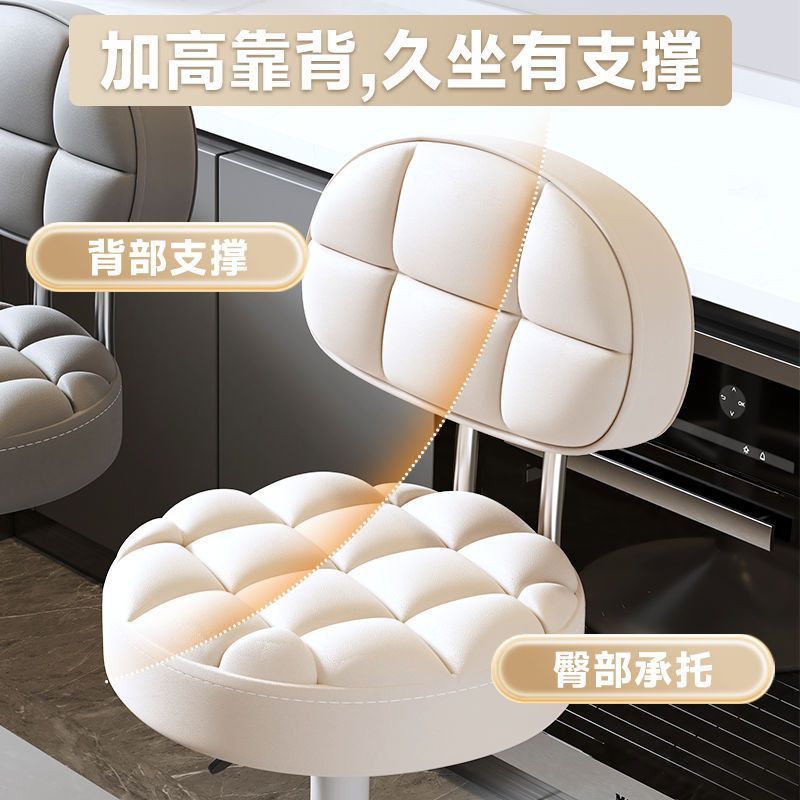 カウンター椅子の背が高くて、背もたれが昇降して回転します。
