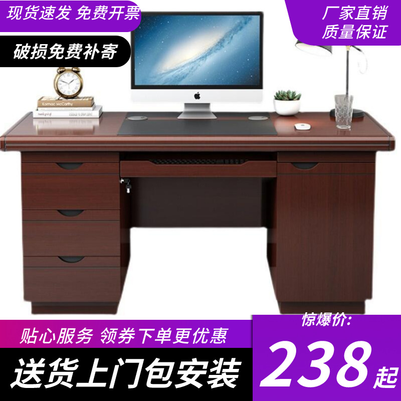 シンプルで現代的なデスクトップパソコンの机家庭用デスクのシングルスタッフの机に引き出し付きの厚手のテーブルが設置されています。