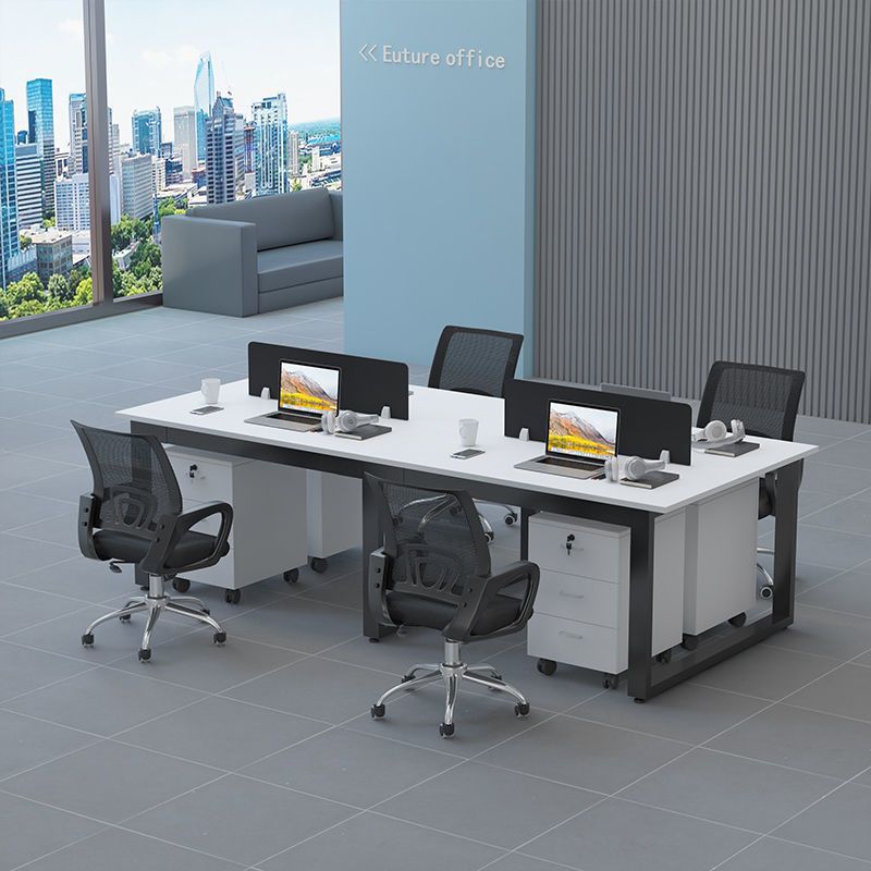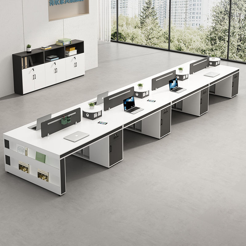 職員机4人位事務室テーブルと椅子の組み合わせシンプル現代屏風カード座従業員ステーション4人位