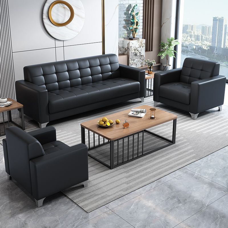 本革オフィスソファーシンプルモダンビジネス接客カジュアル三人位ティーセット革芸