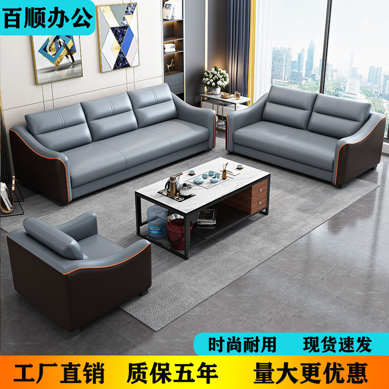 オフィスソファー本革シンプルビジネス応接室応接区レジャーオフィスソファーティーセット三人席