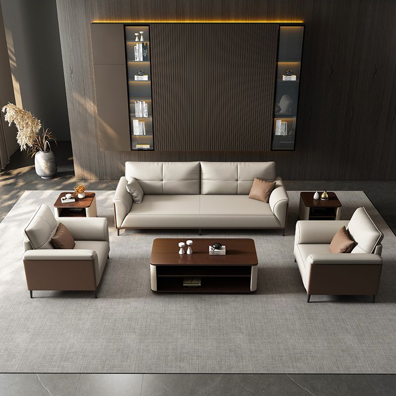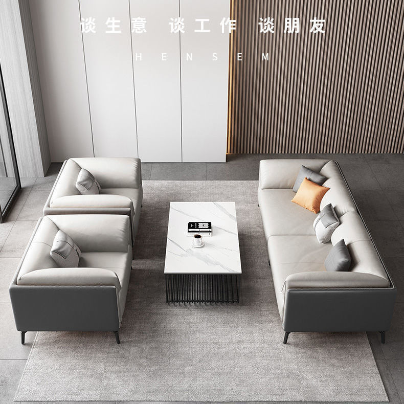 オフィスソファー現代シンプルビジネス接客休憩室軽贅沢北欧真皮ソファ茶卓セット