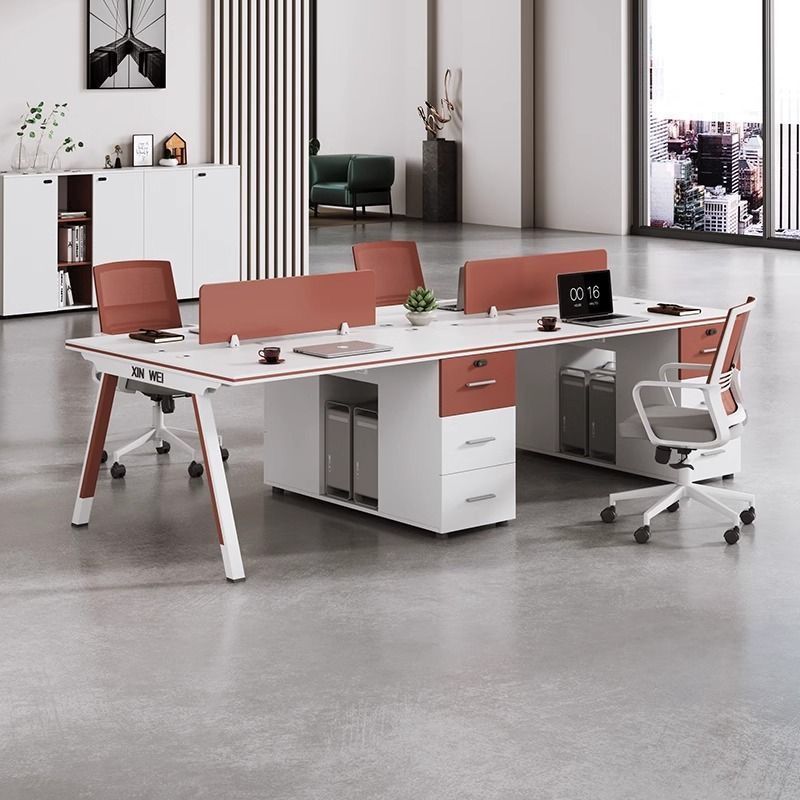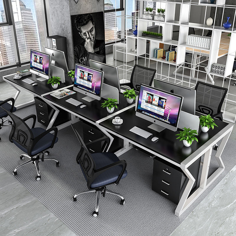 職員机事務室ステーション四4/六人従業員テーブル現代シンプルコンピュータテーブルと椅子の組み合わせ