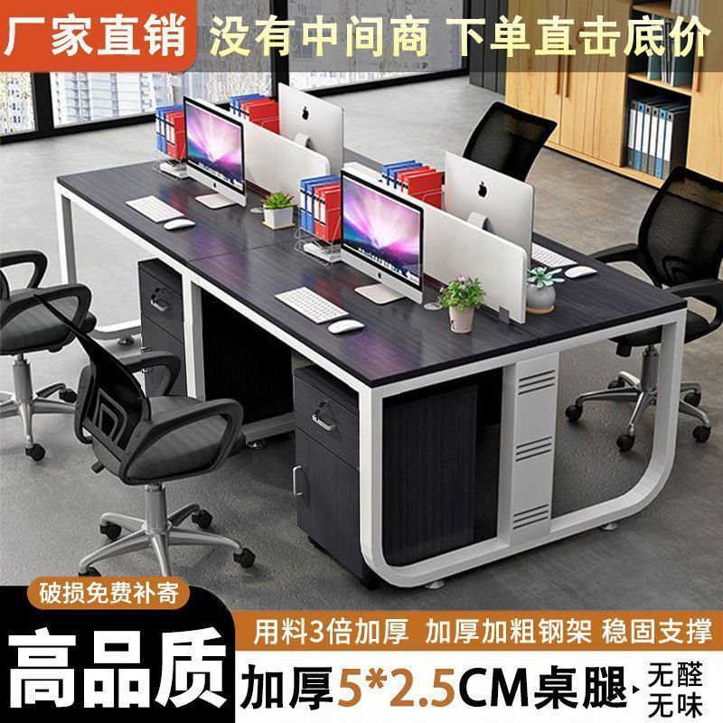 【ケーブル付き】雅尚職員事務机と椅子の組み合わせシンプルな現代屏風パソコンデスク2/4/6従業員
