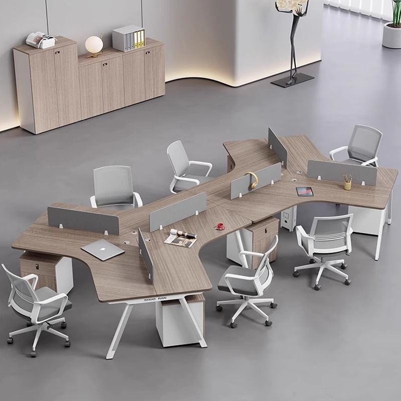 職員の事務机と椅子の組み合わせのステーションの異形の6人の事務机の従業員の3人の事務室の家具の現代のシンプルさ