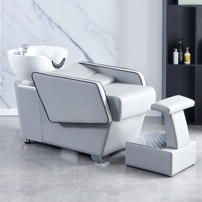 頭を洗うベッドの床屋の専用の美容院の半分の横になる式の頭を洗うベッドの高級な陶磁器のたらいの水を洗うベッドのメーカーは直接販売します。