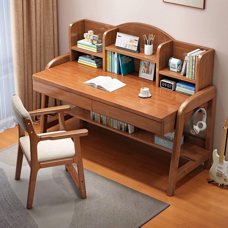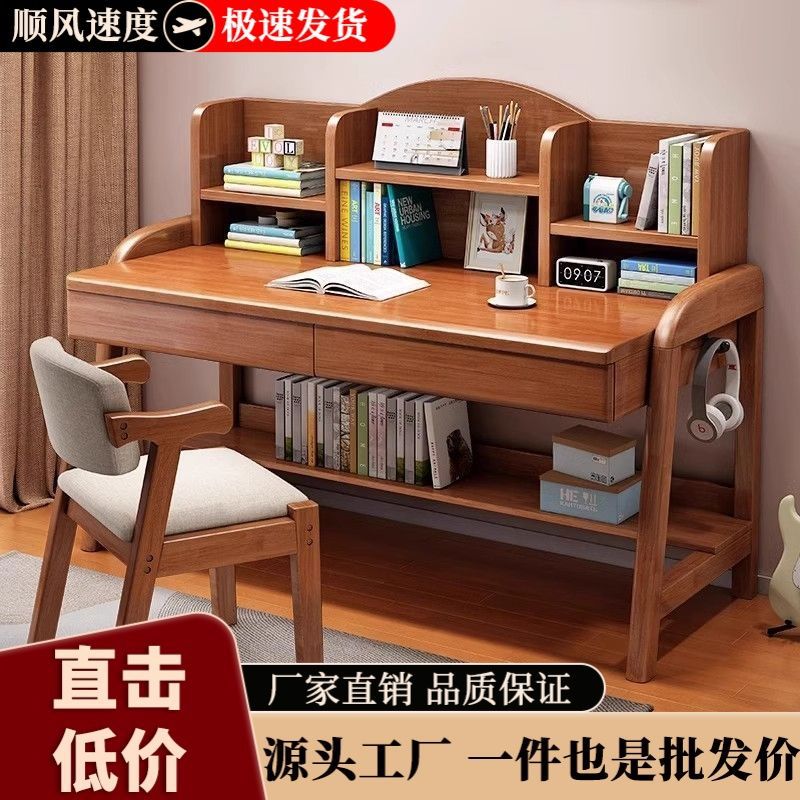 実木の机の手動昇降テーブルの中学生の机の寝室の家庭用の簡単な机の本棚の机のオフィスチェア