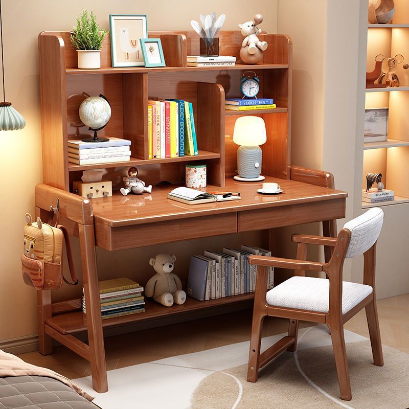 実木児童学習テーブル家庭用書斎セット家具本棚付き一体昇降机学生部屋の机