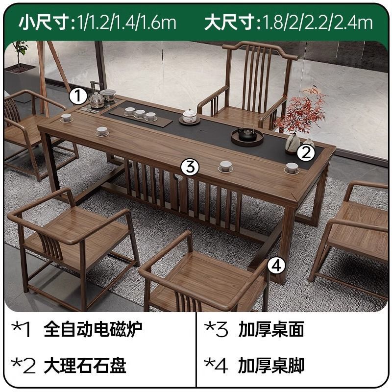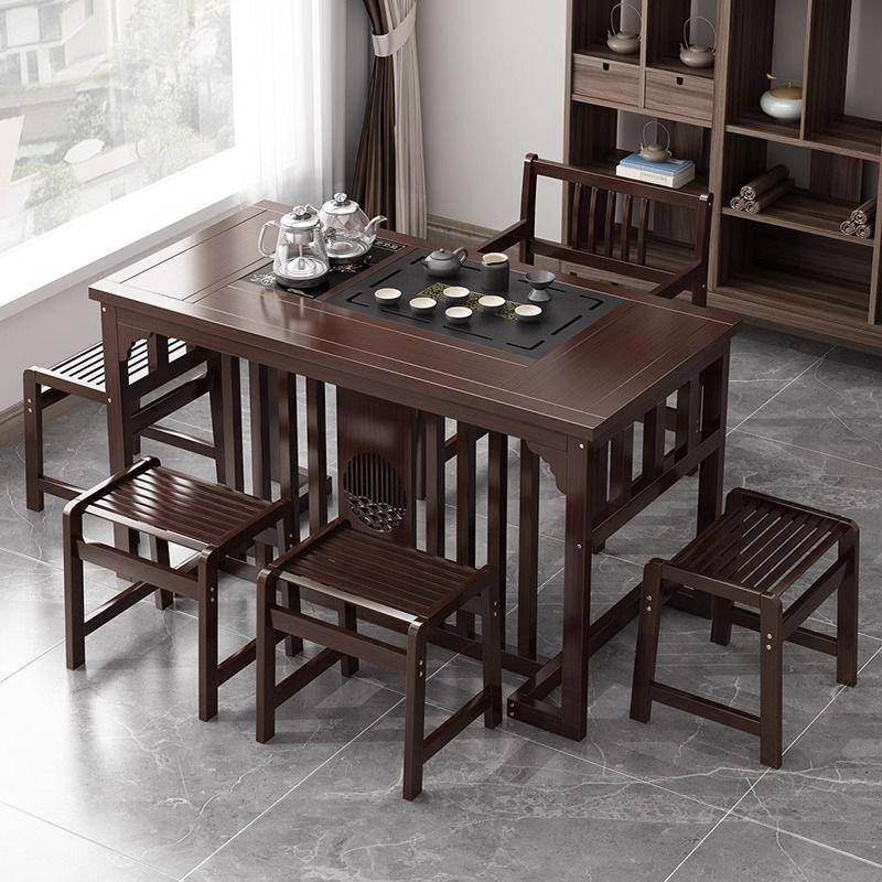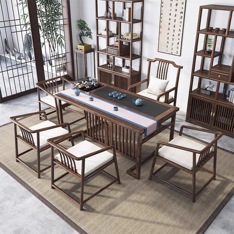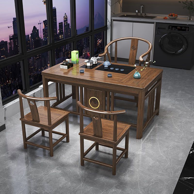 新中国式茶卓椅子セット一体型テーブル五椅子セット一体オフィス茶台家庭用ベランダ実木小茶卓