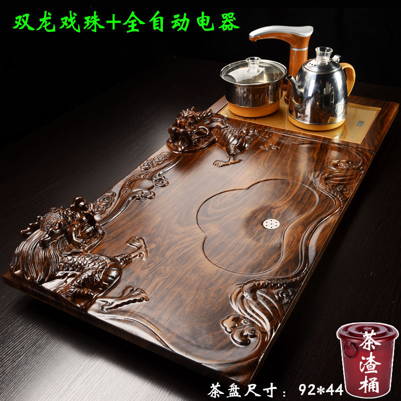 楊家用オフィス茶台茶海大サイズ木製茶盤自動揚水電気機器四合一茶器セット
