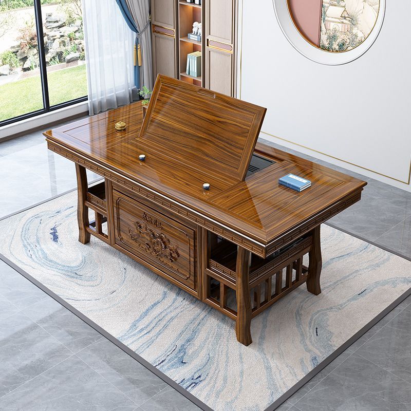 ベランダの茶のテーブルと椅子の組み合わせの実木の新しい中国式のフルセットの事務室の客間は簡単で小さいお茶のテーブルは水を沸かして一体のお茶の台を焼きます。