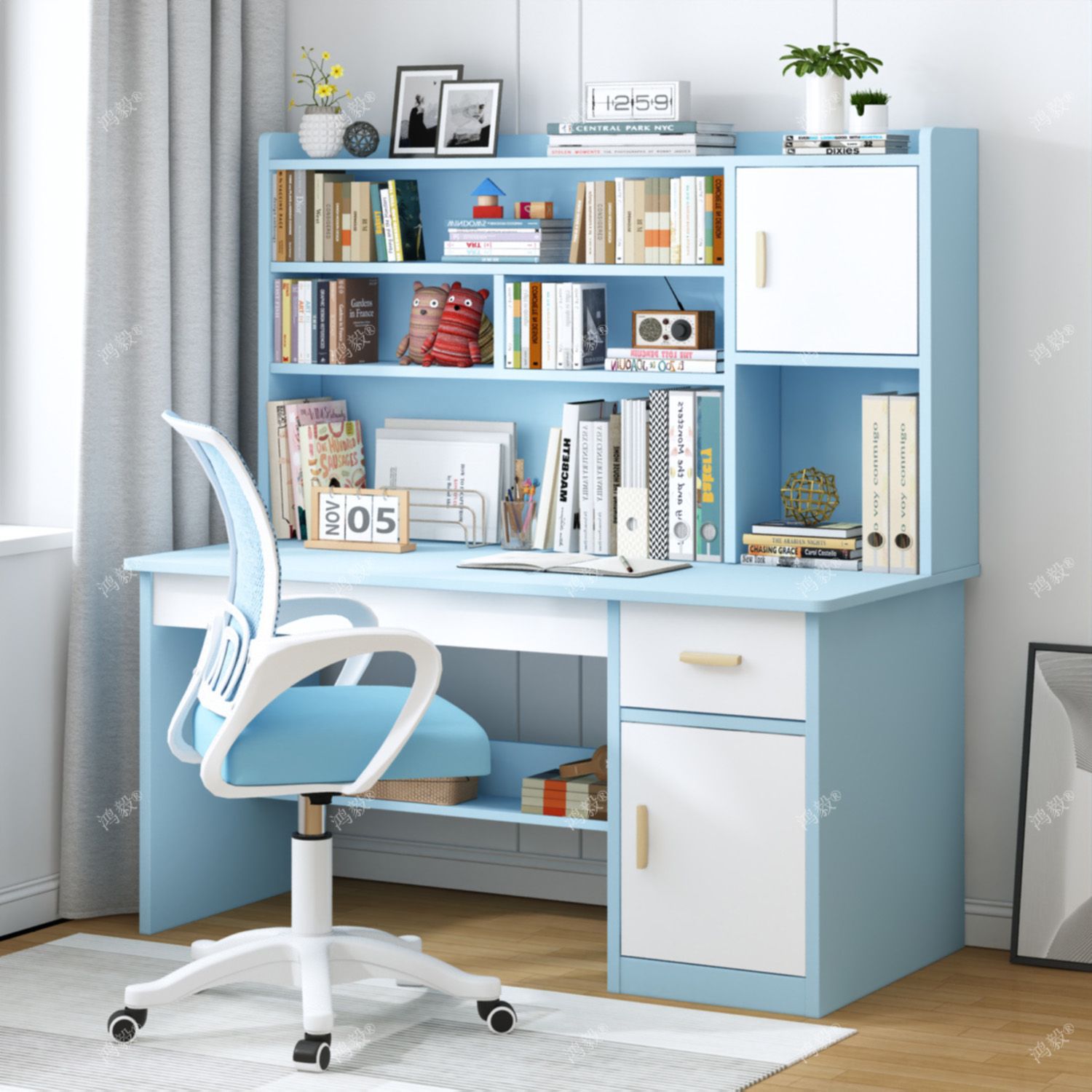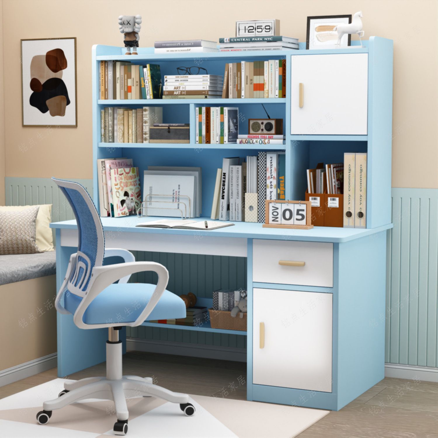 子供の学習書と椅子の組み合わせ学生専用の本棚の本棚の一体機の多層は事務のコンピュータの机を収納します。