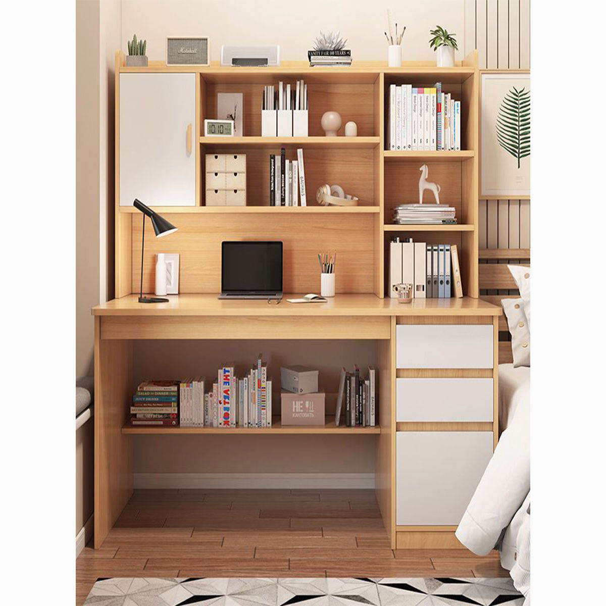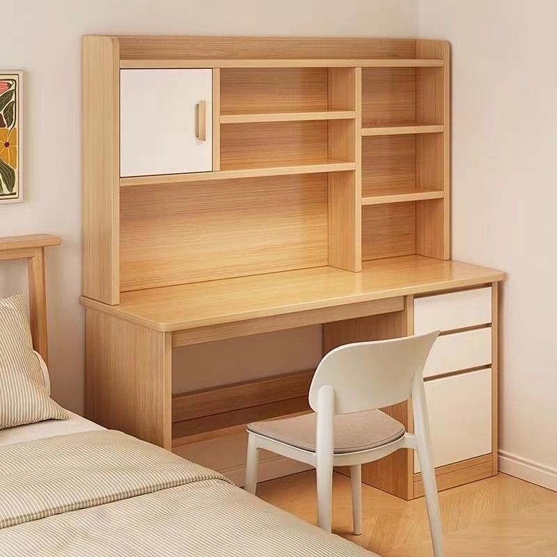 実木机学生家庭用学習机寝室本棚一体テーブル本棚引き出し成人パソコンテーブル