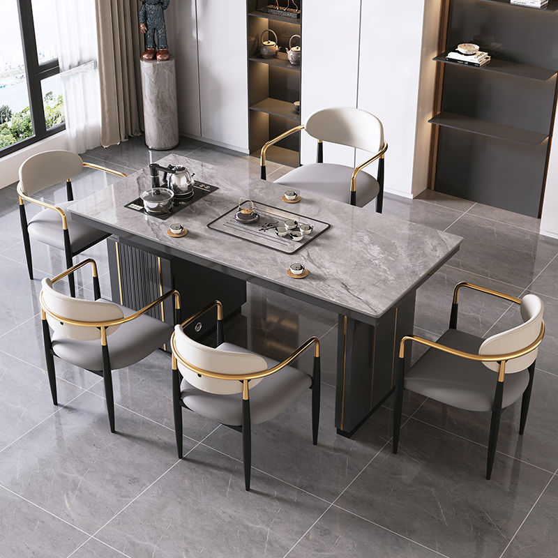 軽豪華風岩板茶テーブルと椅子の組み合わせは簡単で、現代のオフィスでお茶を入れる台の工夫茶テーブルが一体になっている