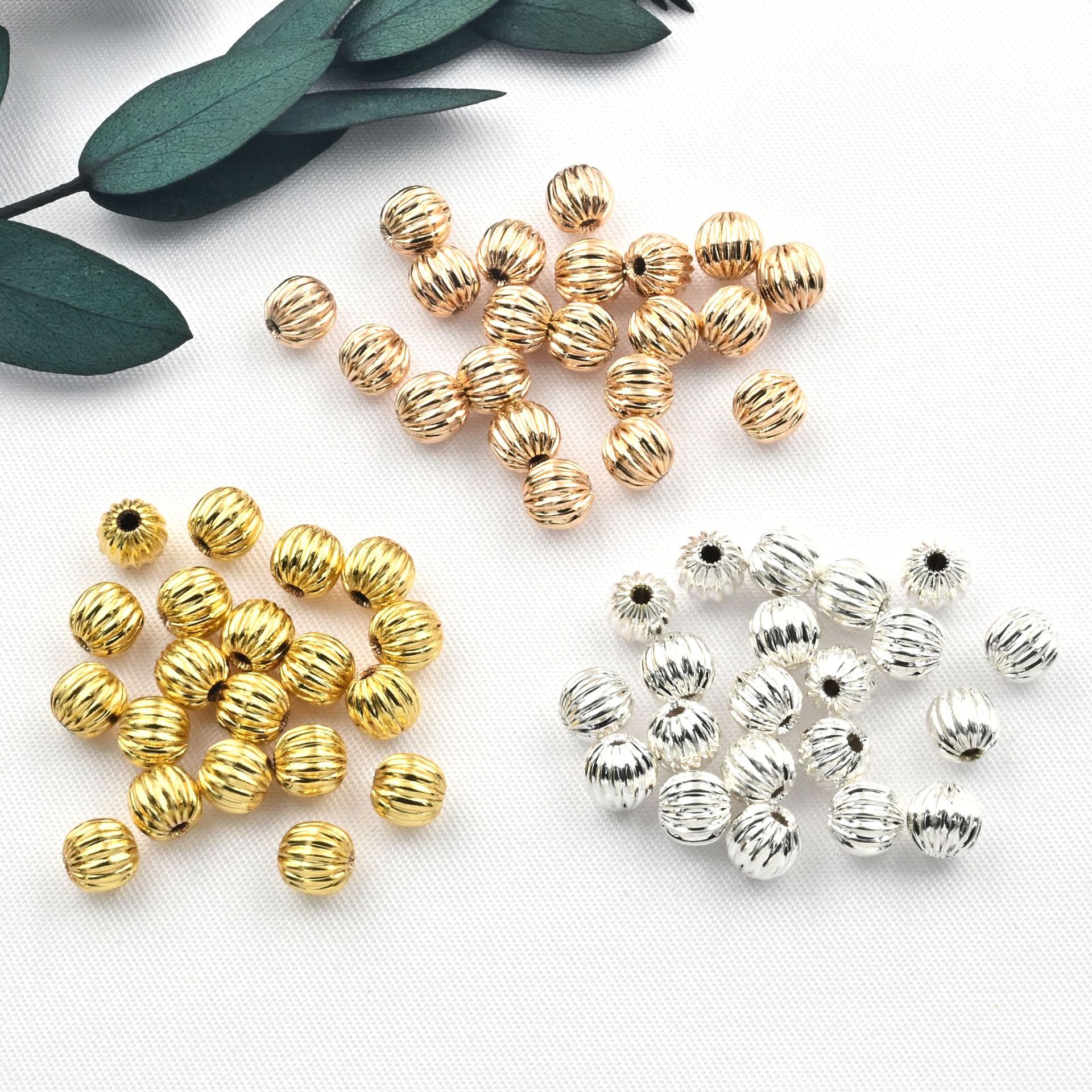 DIY手作りビーズアクセサリー 銅メッキ14Kゴールドカラー変色防止銅ビーズ パンプキンビーズ ジュエリーブレスレットネックレス素材