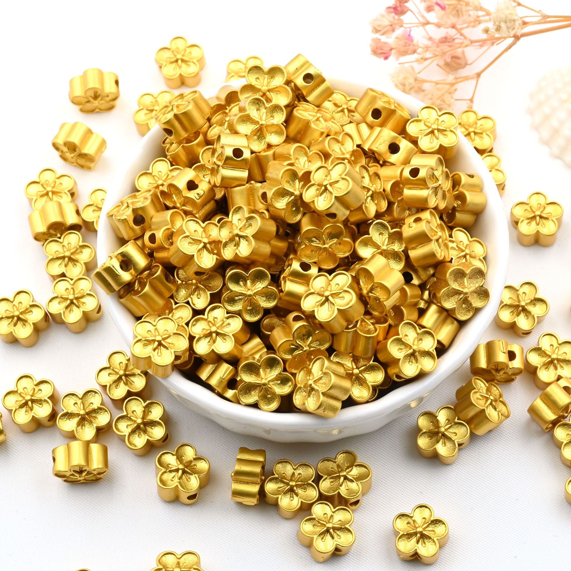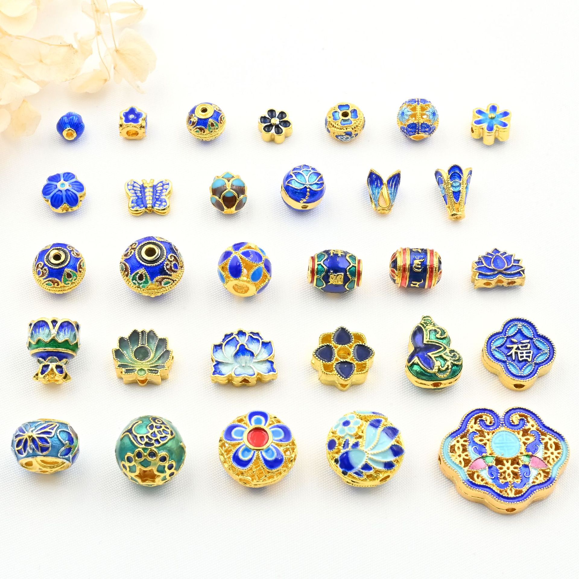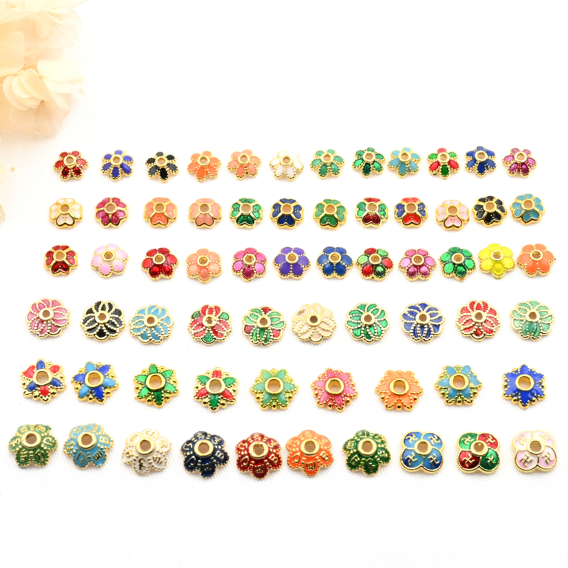 18k亮金6-8-10mmキャンディー色滴油花托景泰青花帽ブレスレットビーズdiyアクセサリー部品