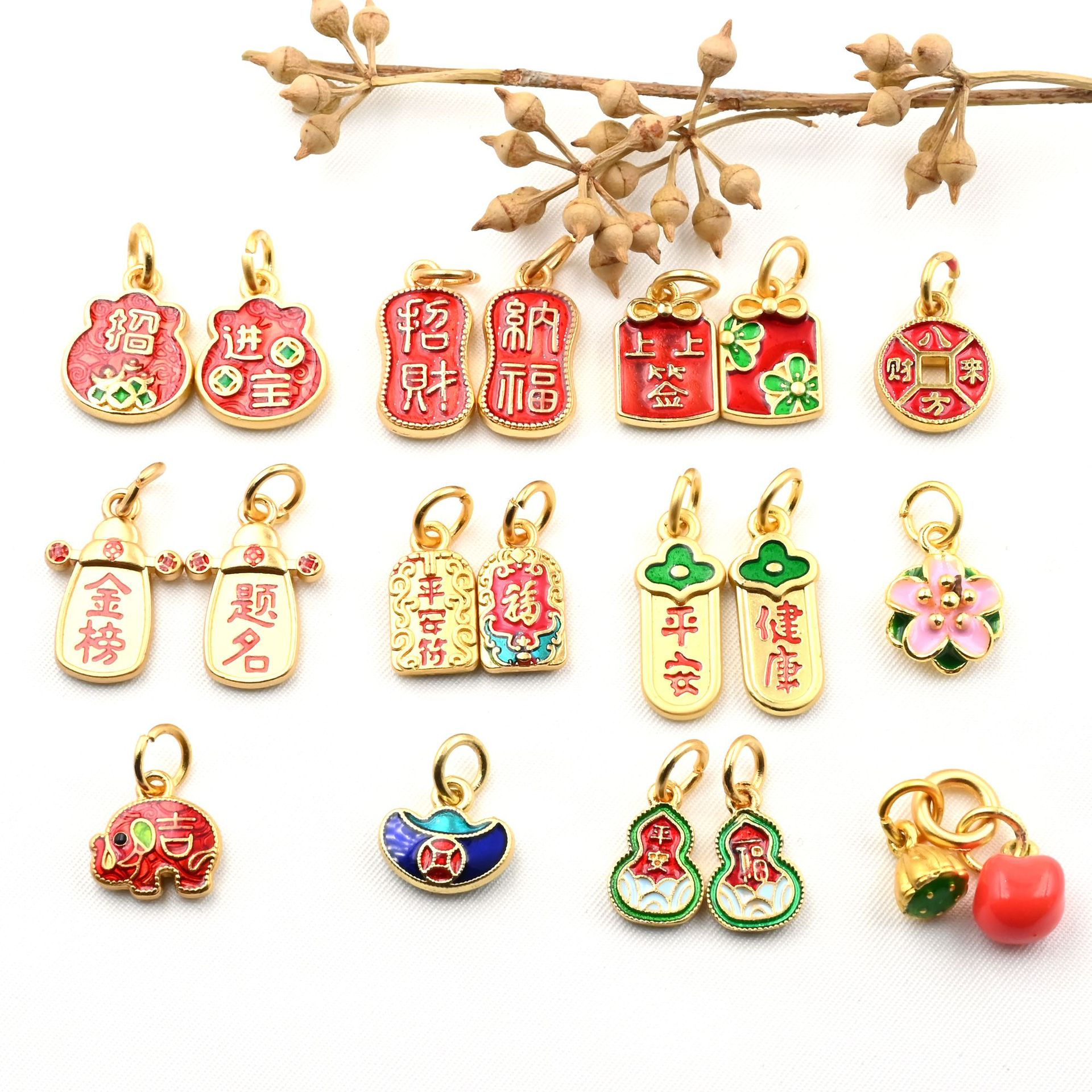 古法金彩焼藍平安喜楽ペンダント DIY編み込み手紐ブレスレット延長チェーンペンダント小物