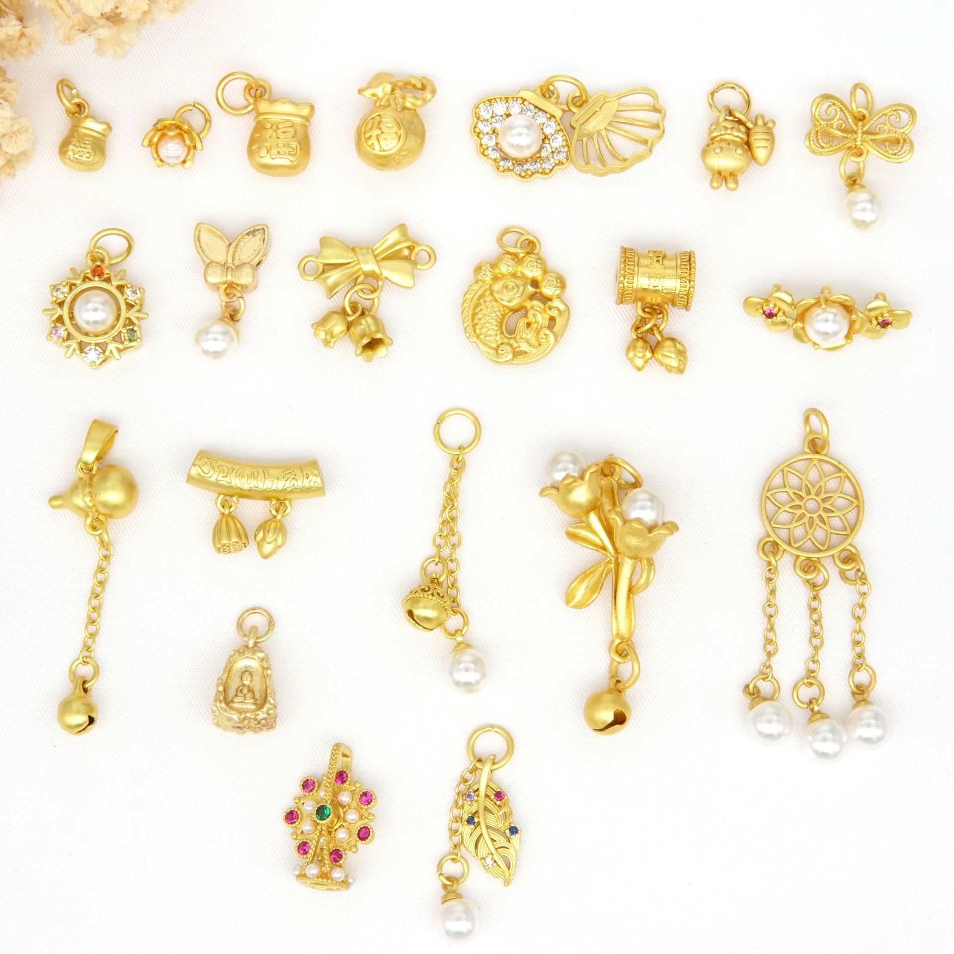 古代の金の蝶結び、葉っぱ、ひょうたん、ドリームキャッチャー、タッセルペンダント、パールペンダント、ブレスレット、ネックレス、ブレスレットアクセサリー