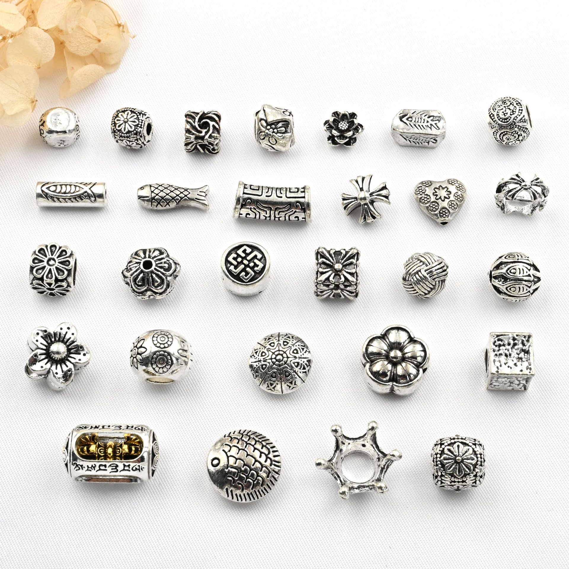 チベット銀レトロ合金ビーズピアス古銀色民族風ブレスレット手串ビーズdiyアクセサリー部品卸売り