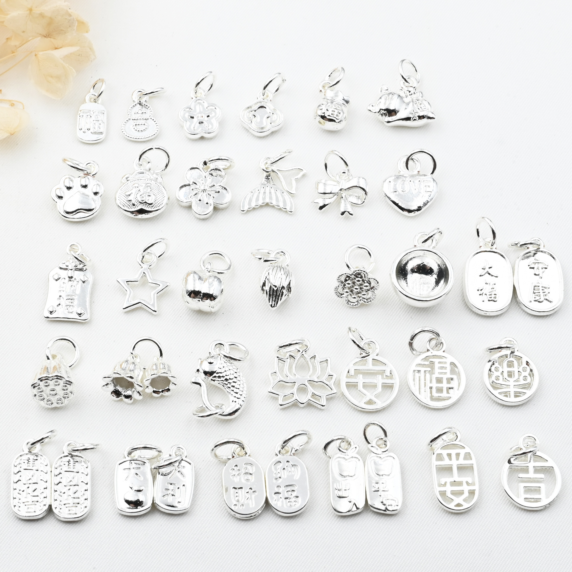 銀メッキ保色ペンダント招財納福如意ペンダント蓮蓬福字小魚蘭玲花ブレスレットdiy小ペンダント
