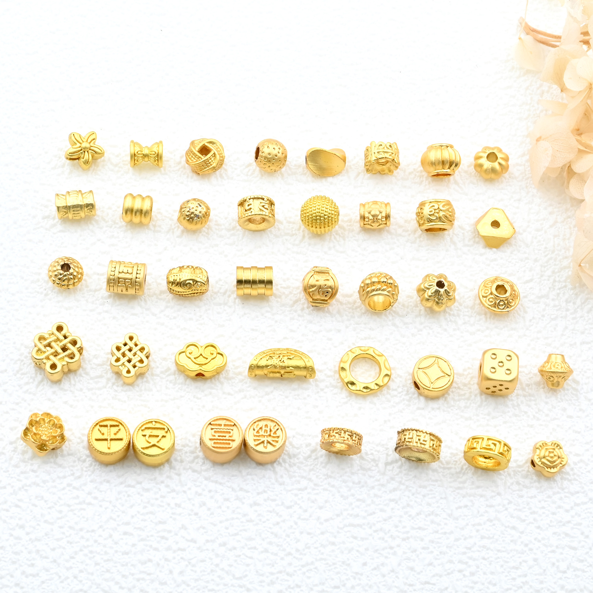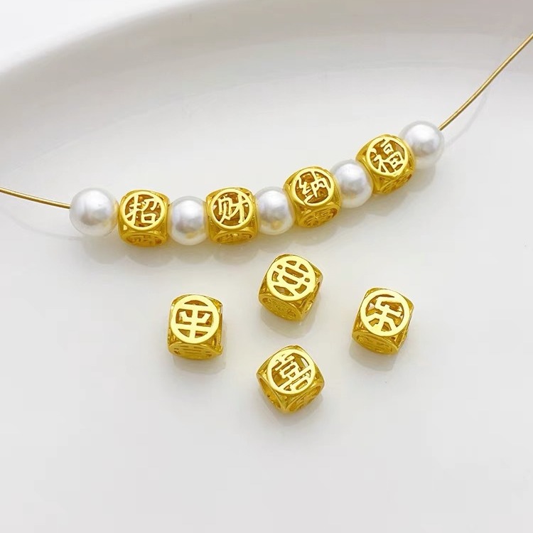 古法金保色平安喜楽招財納福大孔隔珠角型抜き輸送ロープビーズ部品
