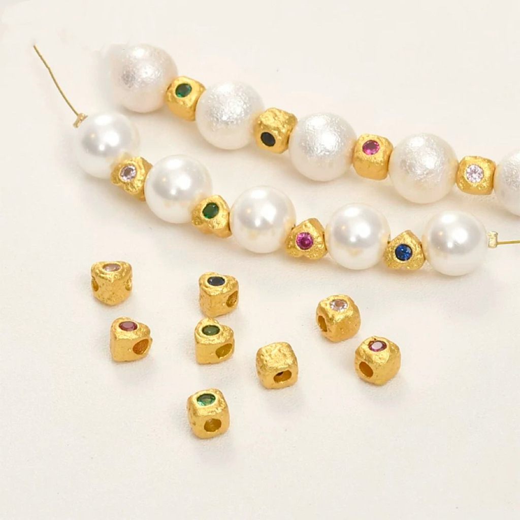 古法沙金はジルコンの正方形の粒の愛のハンマーの紋様の方糖の隔珠のブレスレットのネックレスのアクセサリーの材料を入れます。