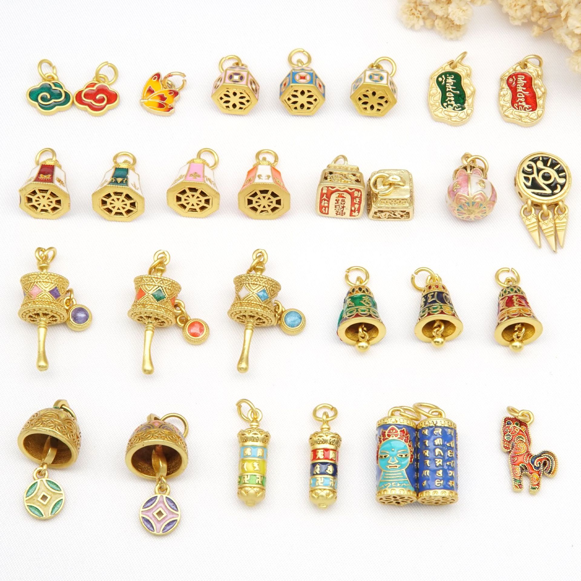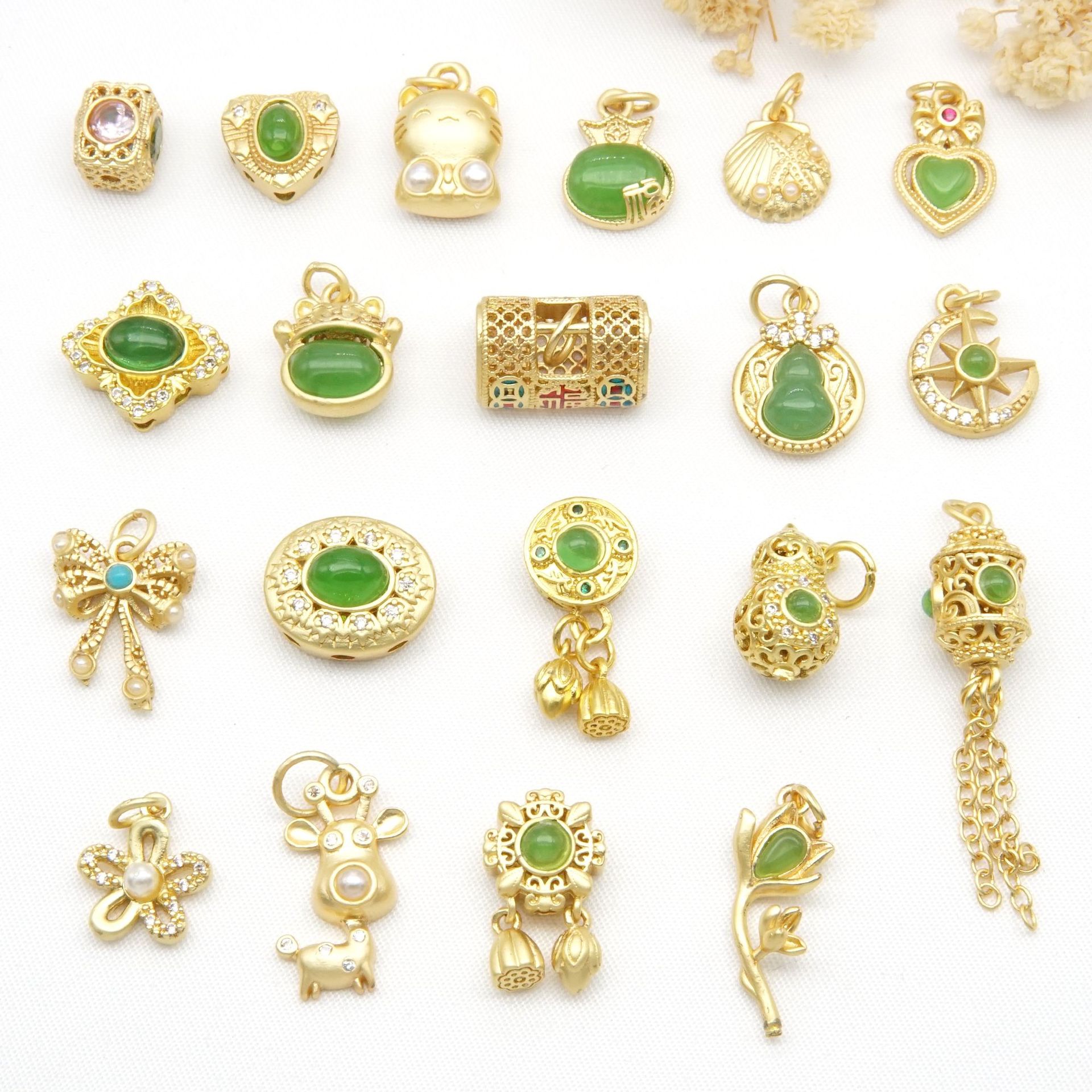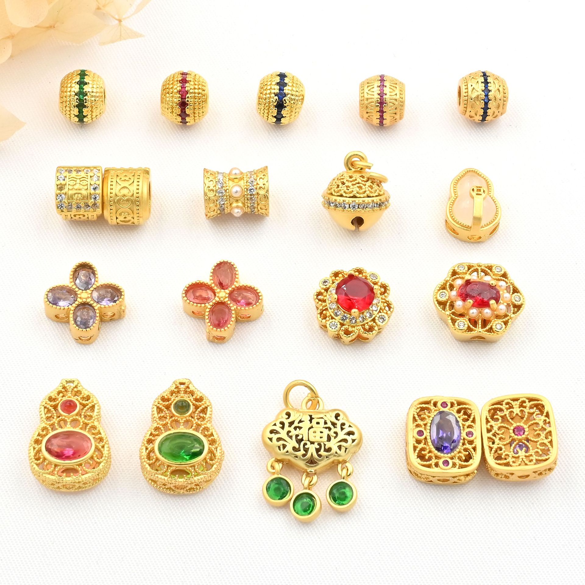 古法金モザイクカラージルコニウム隔珠瓢箪四葉草福錠鈴アクセサリービーズ金メッキアクセサリー