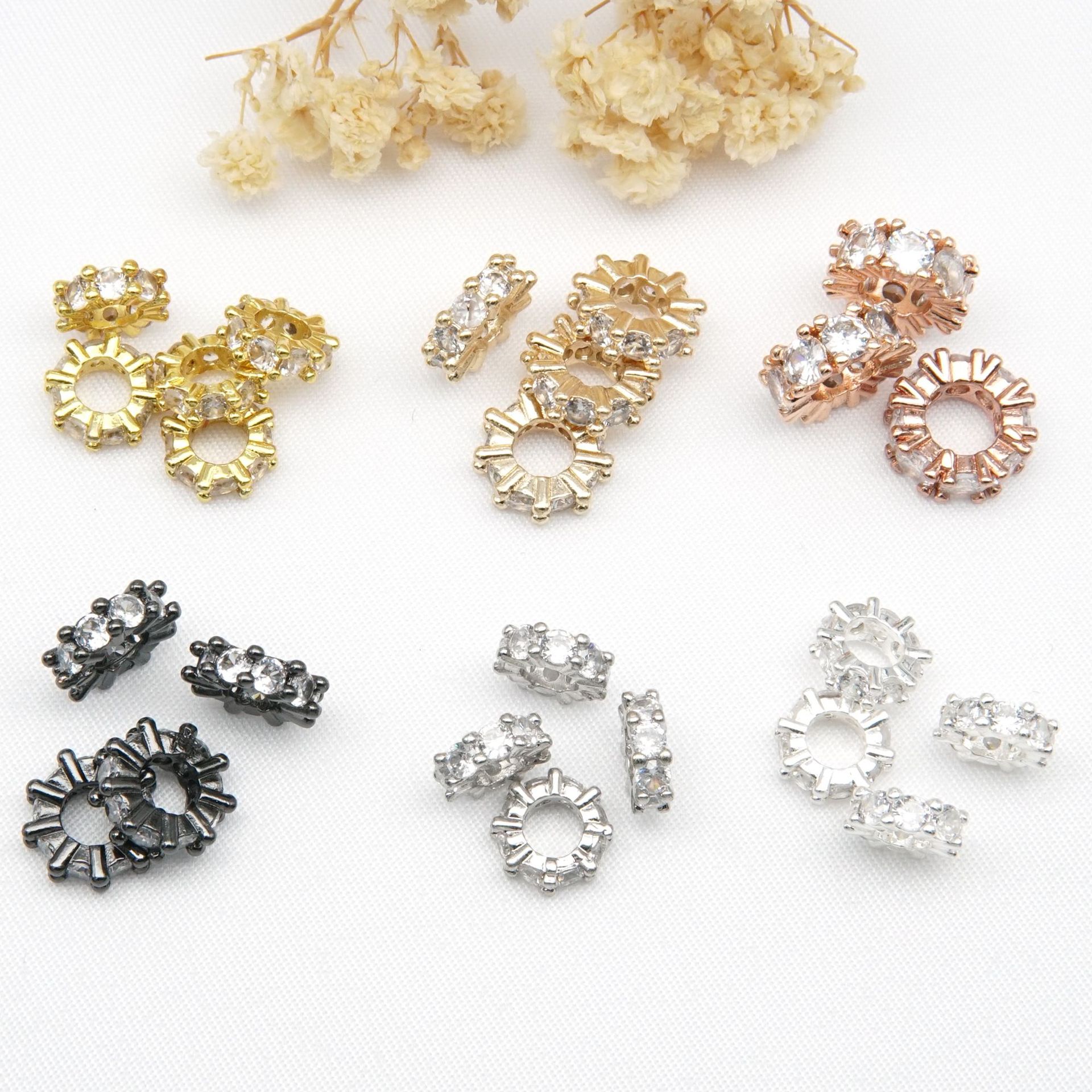 14K金メッキ、色褪せ防止、マイクロインレイジルコニア、大穴ドリルリングスペーサービーズ、DIYジュエリーアクセサリー、ブレスレットスペーサー、ビーズ材料