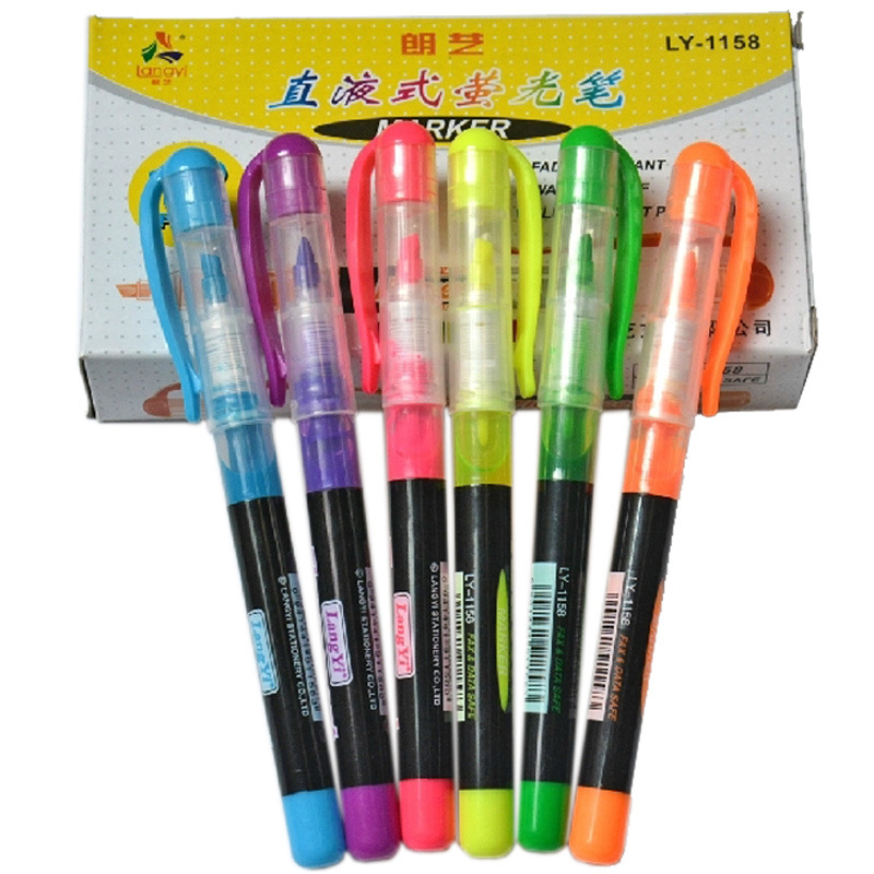 ストレート液体蛍光ペン 6 色かわいいカラーキーマーカーペンゼリーカラー落書きペン Langyi 1158 蛍光ペン