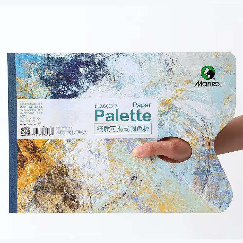 マーリー 洗わないティアオフカラーパレット ガッシュ水彩アクリル油絵 使い捨て紙パレット A4 8Kカラーパレット