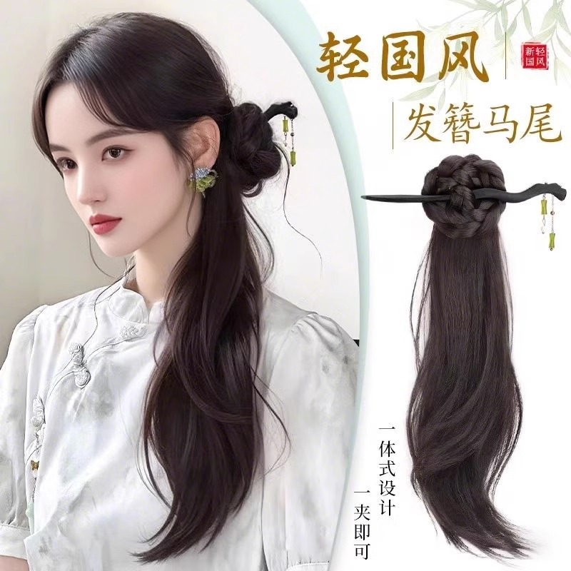 ウィッグ三つ編みポニーテールクリップ、優しい韓国風ローポニーテール、新しい中国風ウィッグ、人工毛、ナチュラルレイジースタイルアーティファクト